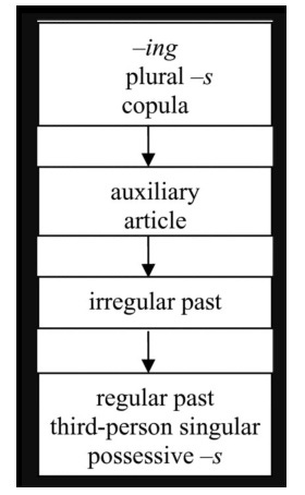 Here's an example from Krashen of SOME of the grammatical forms multilingual learners acquire in stages: